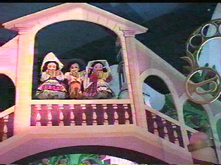 She did have one adventure that clearly stands out in her memory. Early in the morning she met up with Tweedle Dee and Tweedle Dum. She didn't know who they were and tried to run. They wanted to shake hands. The result was similar to watching two large people try to catch a chicken in a barn yard--with Juli as the chicken. After a good laugh and many screams (of delight?) they finally caught each other and could shake hands. Juli now remembers this every time we watch the movie Alice in Wonderland.